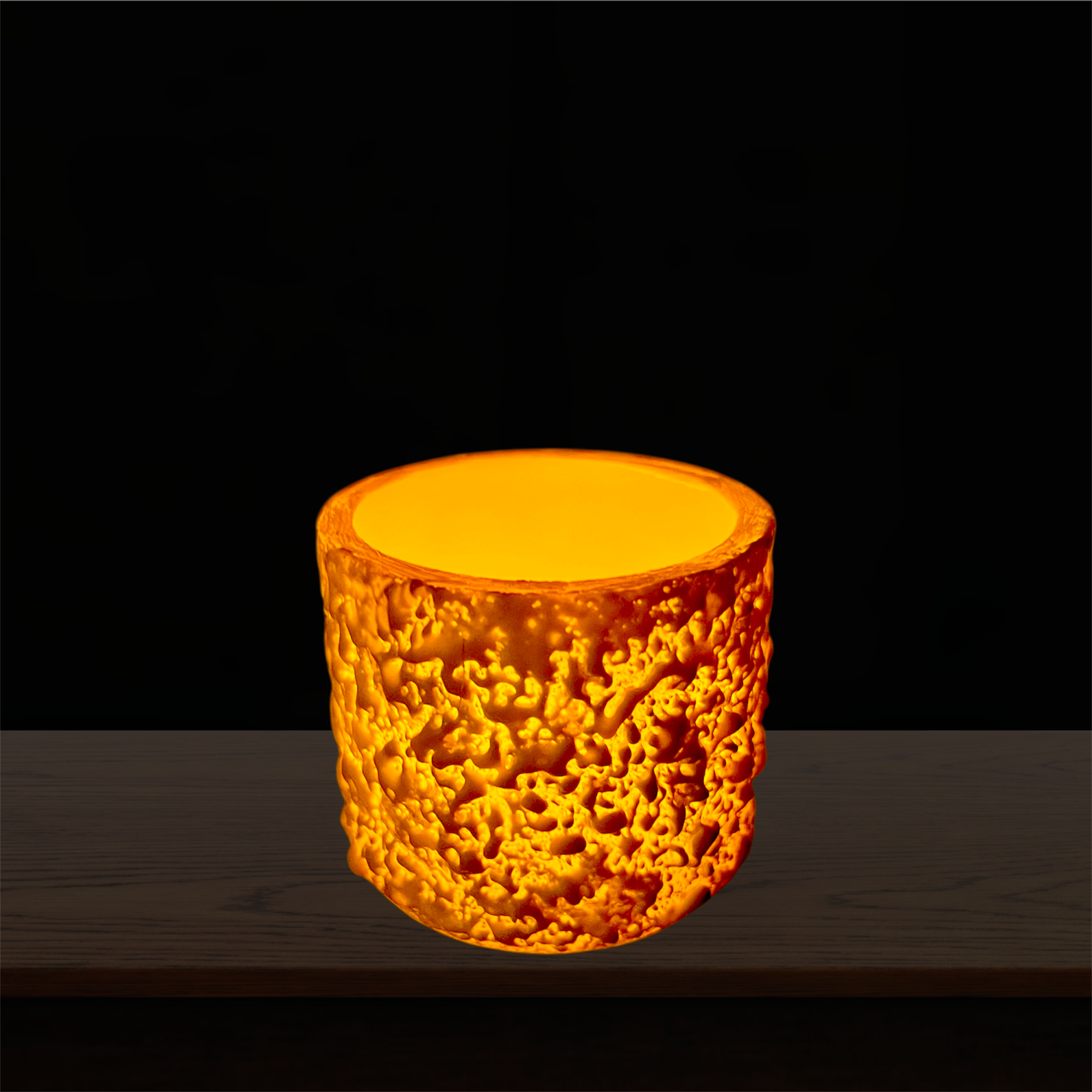 溶けにくいロウを外側に使用しており、中は空洞でLEDライトを入れています。