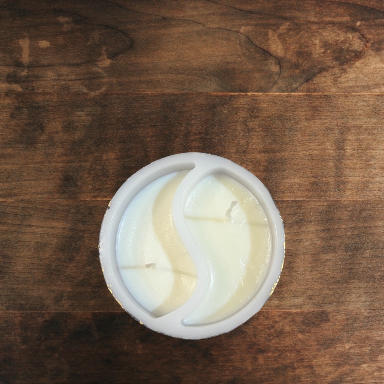 溶けにくいロウを外側に使用しており、中は2種類の香り【リリー】と【サンダルウッド】のソイキャンドルです。